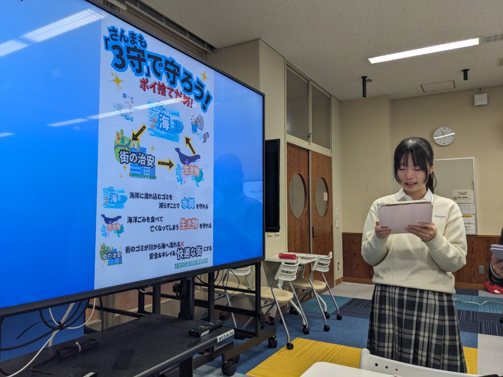 生徒の皆さんはABCDの四つのグループに分かれ、私は狩野川辺りのゴミポイ捨て対策・海岸のゴミ対策に取組むCグループとの意見交換に参加させて頂きました。